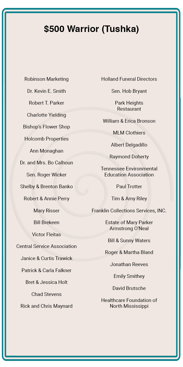 Donor recognition is an important part of every campaign. The Chickasaw Inkana Foundation has a tiered system of acknowledging all donors with the